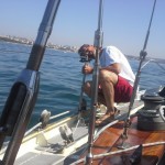 2110 – Mijamy Cabo Corveiro po lewej burcie. Wieje słaba trójeczka. Na noc zarefowany grot i kliwer. Musieliśmy zrzucić genuę z uwagi na przetarcie górnego stropika i fału. Będąc za sterem zauważyłem, że dośc dziwnie układa się przy fordewindzie, zawijając lekko za sztag. Rzut oka i wszystko jasne. Początkowo myślałem, że przetarł się fał, ale po bliższym oglądnięciu podło na stropik. Na baby sztag poszedł kliwer i płyniemy dalej ok. 4 węzłów. Tak czy inaczej w porcie czeka mnie wycieczka na top masztu. Chyba przy okazji porobię jakieś fotki. Jeśli zgodnie z przewidywaniami zakończymy jutro kolejny etap wyprawy, znów należą się brawa II oficerowi. Jedzenie z posiłku na posiłek znika z lodówki i bakist. Chyba znów uda się, że go nie zabraknie. Teraz w koję, dziś psia wachta ,czyli od północy.